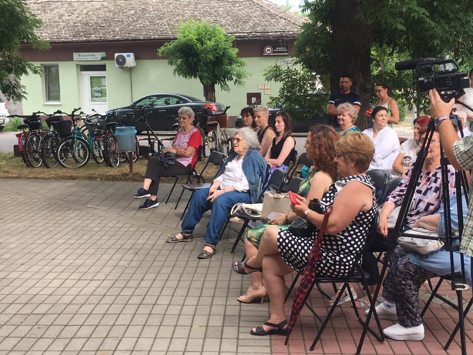 kint ülünk, ki van rakva pár szék a múzeum előtt,